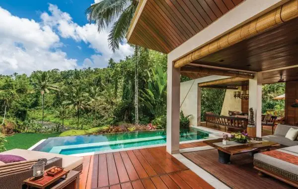 Nehir manzaraları, lüks Bali villaları ve süitleri ve özel havuzlarıyla, aile tatilleri ve yalnız ruhsal yolculuklar için mükemmel bir seçenek.